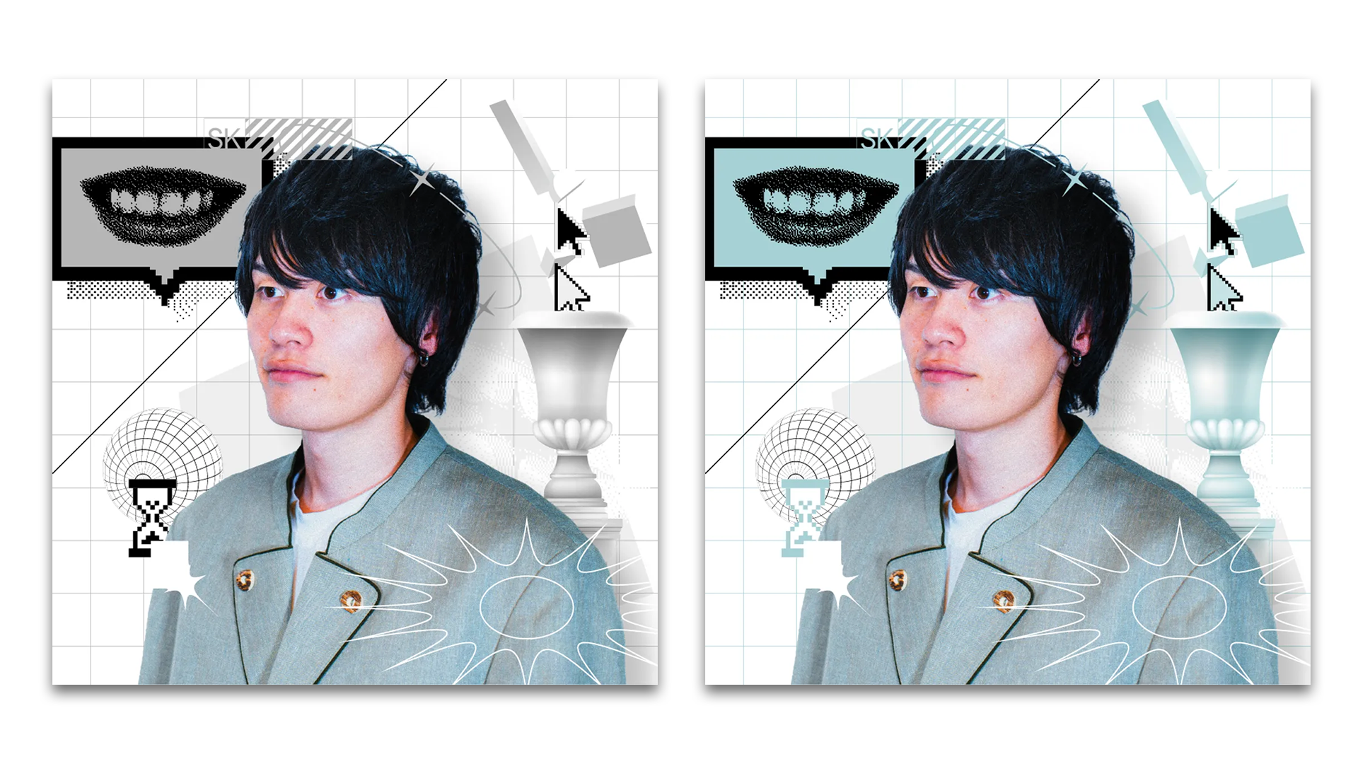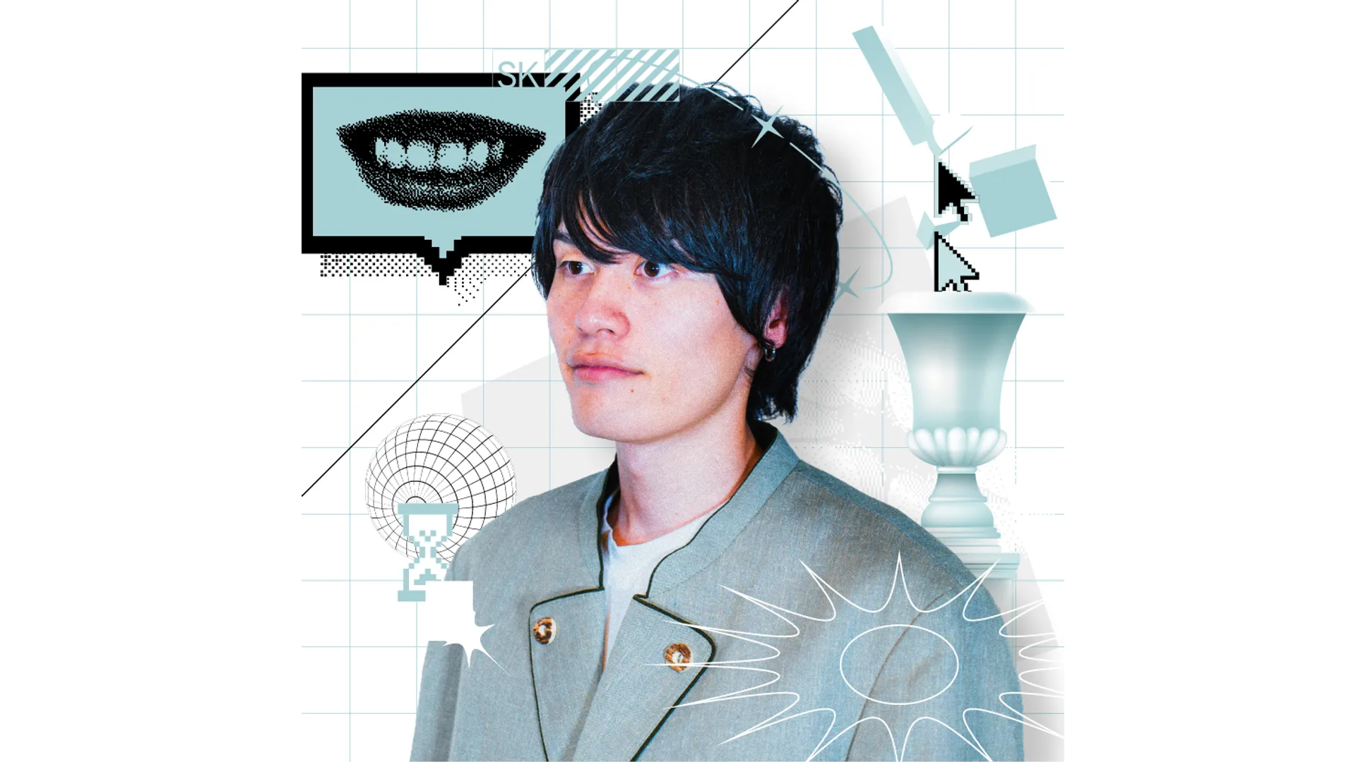 セカイ監督がCMプランナー・エンターテイナーとして頭脳と言葉で相手を楽しませている場面を、抽象的に表現しています。